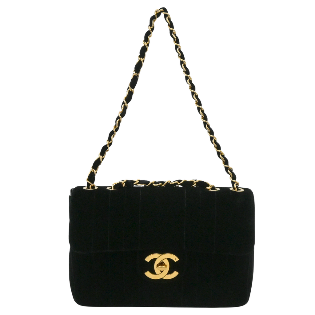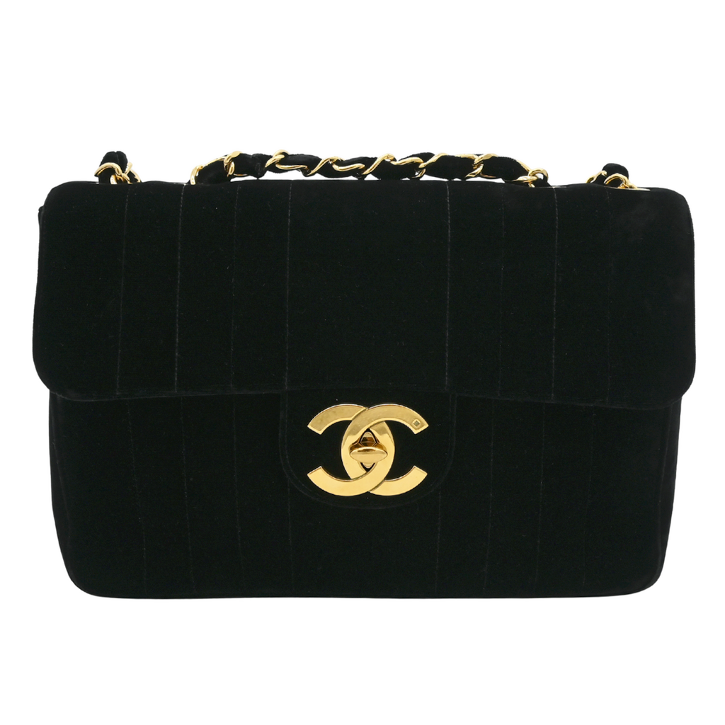 CHANEL | Black Velvet Vertical Quilted Flap Bag