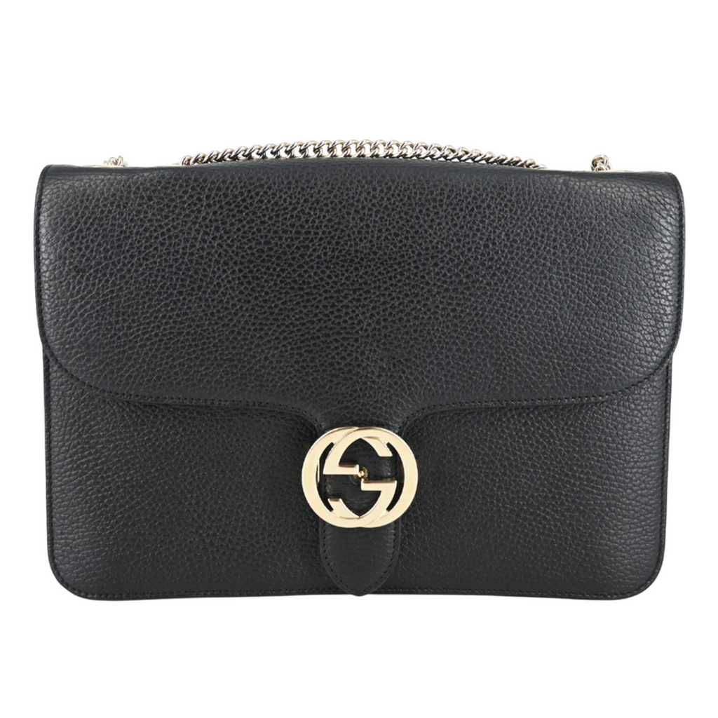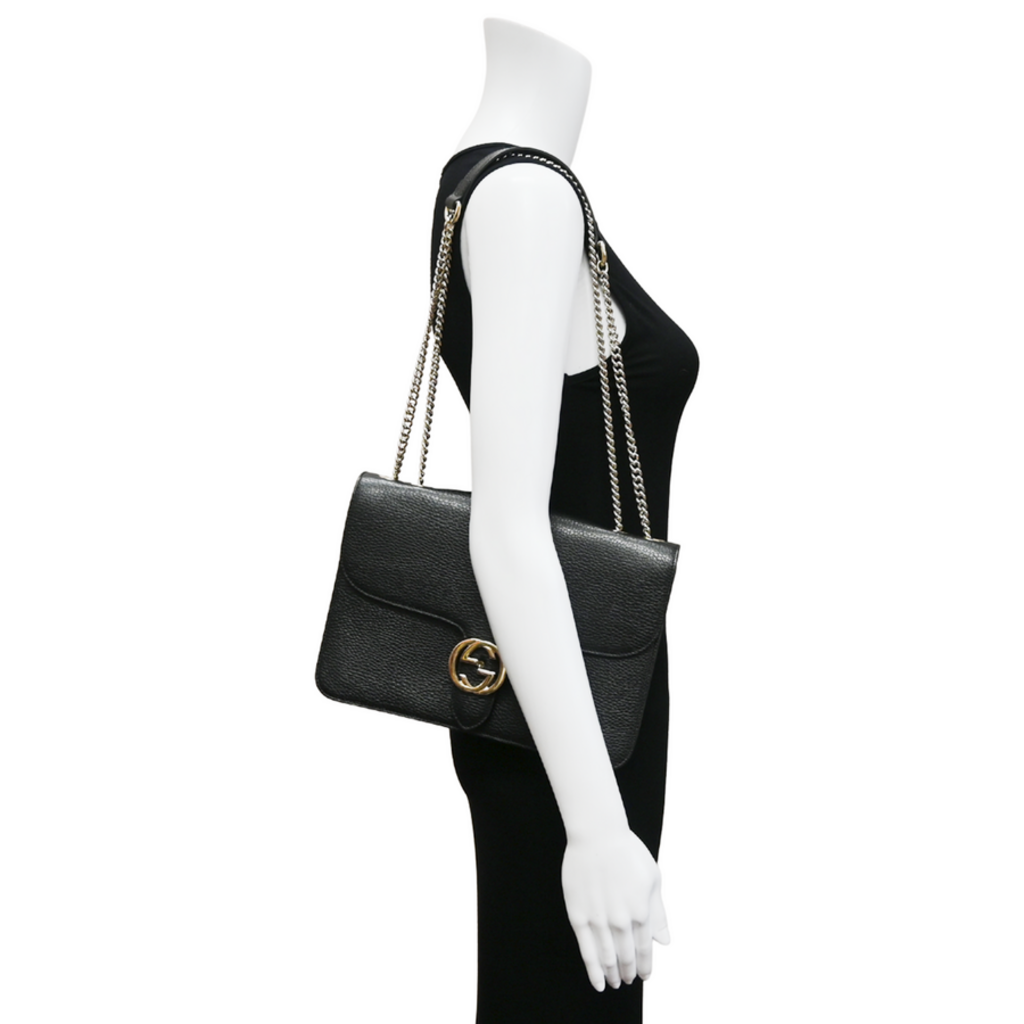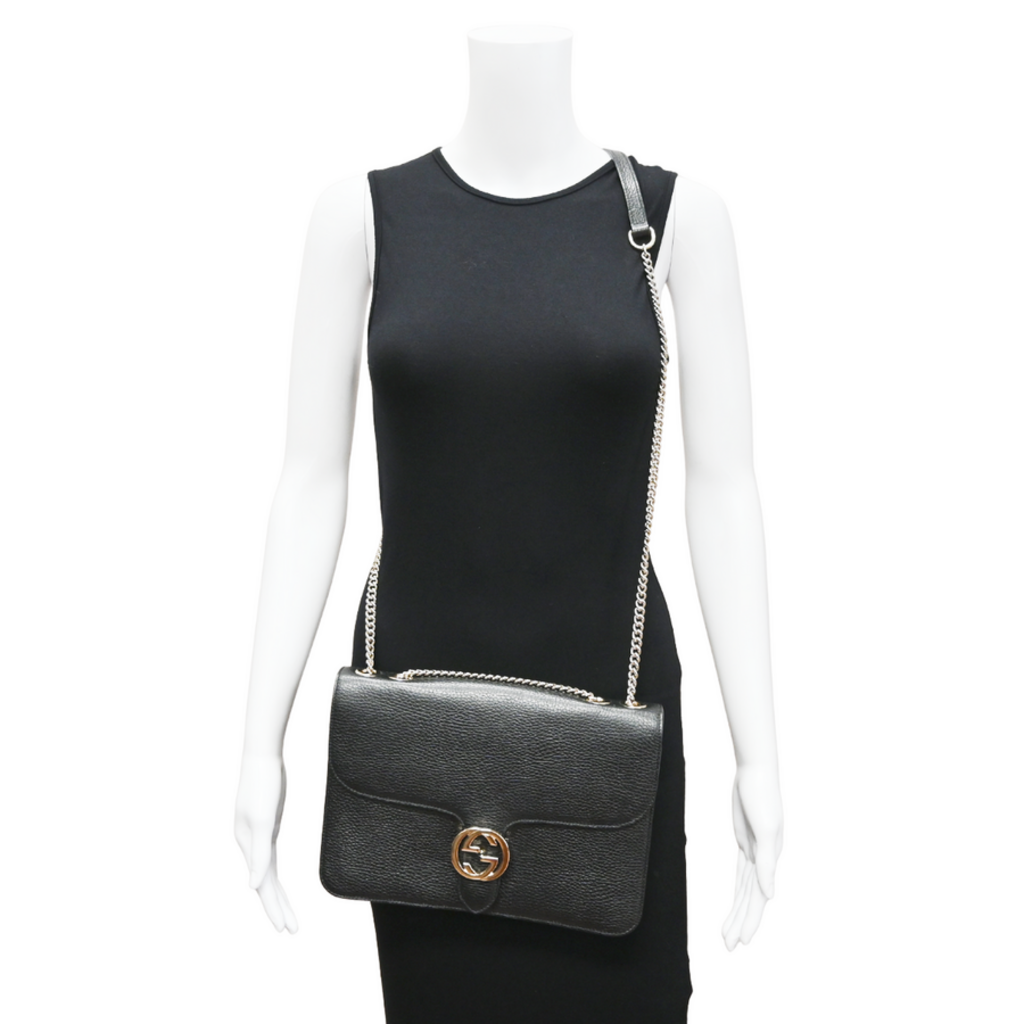 GUCCI | Interlocking G Black Leather Shoulder Bag