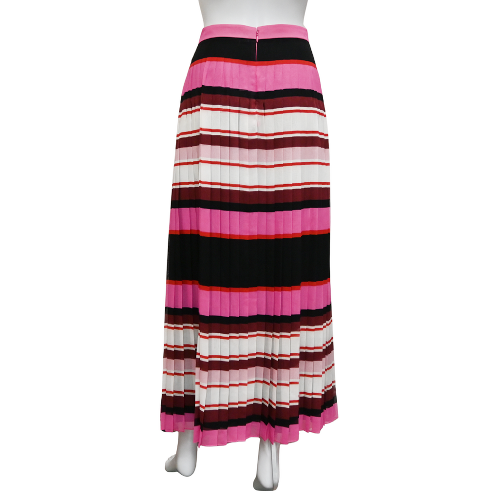 VALENTINO | Striped Pleated Silk Midi Skirt Size 44