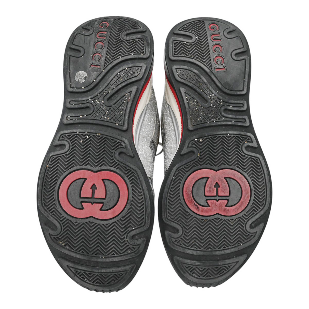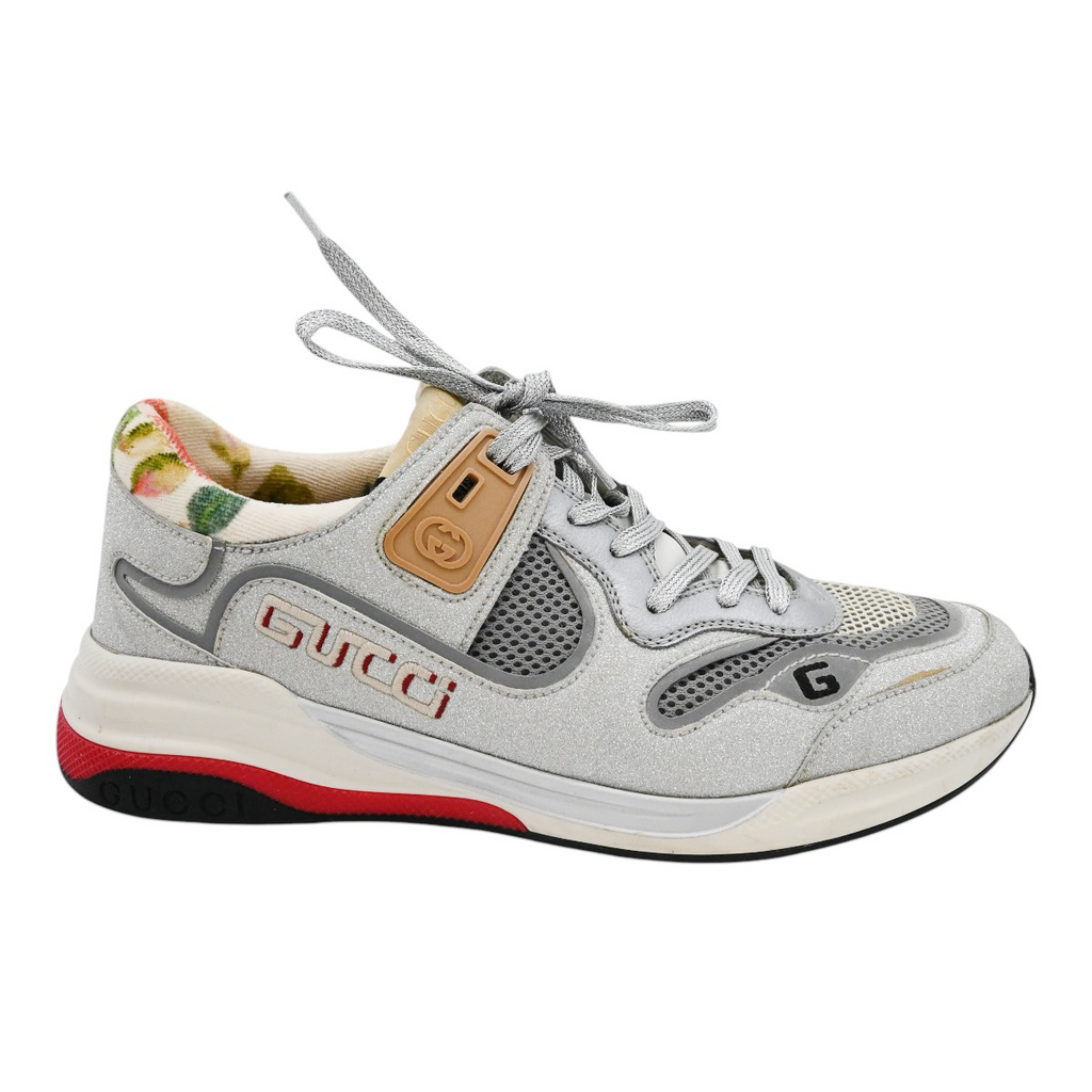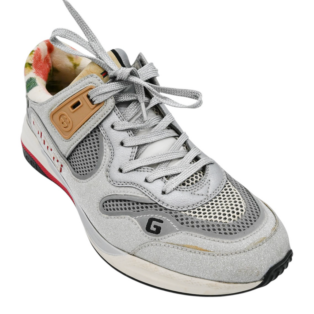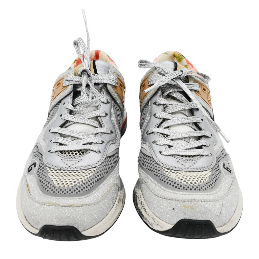 GUCCI | Ultrapace Floral Silver Glitter Sneakers Size 39