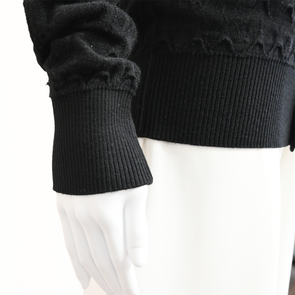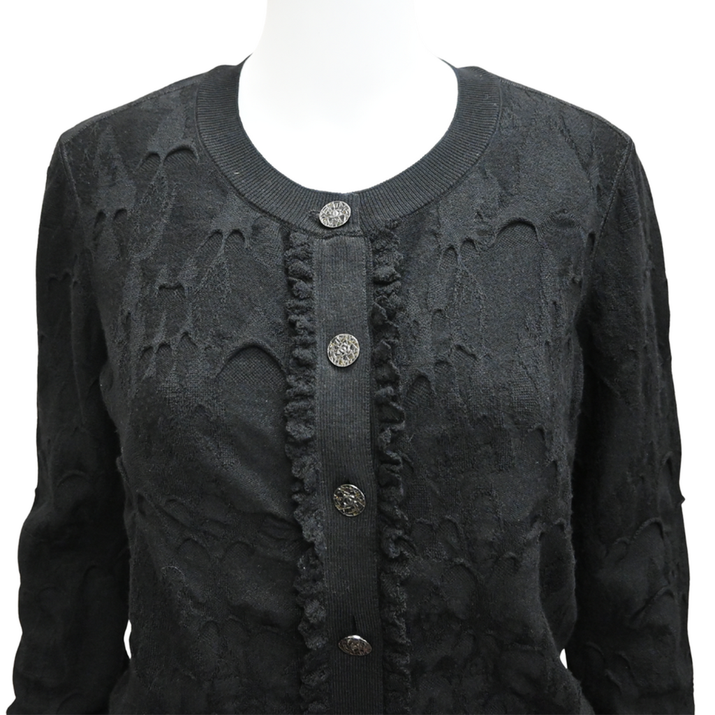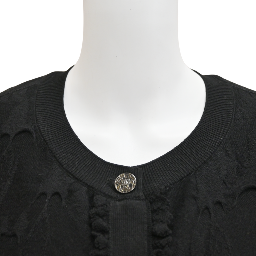 CHANEL | Black Textured Wool Knit Cardigan Size 42