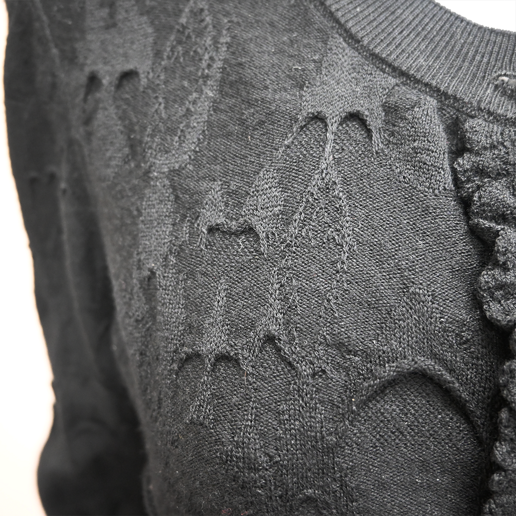 Black drip-like textured wool knit fabric shell
