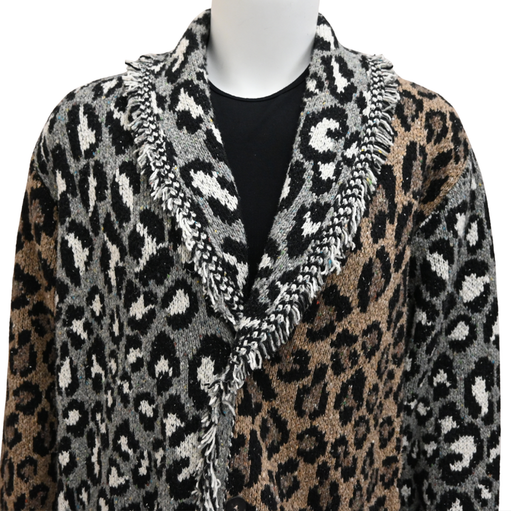 ALANUI | Colorblock Animal Knit Wool-Blend Cardigan Size XL