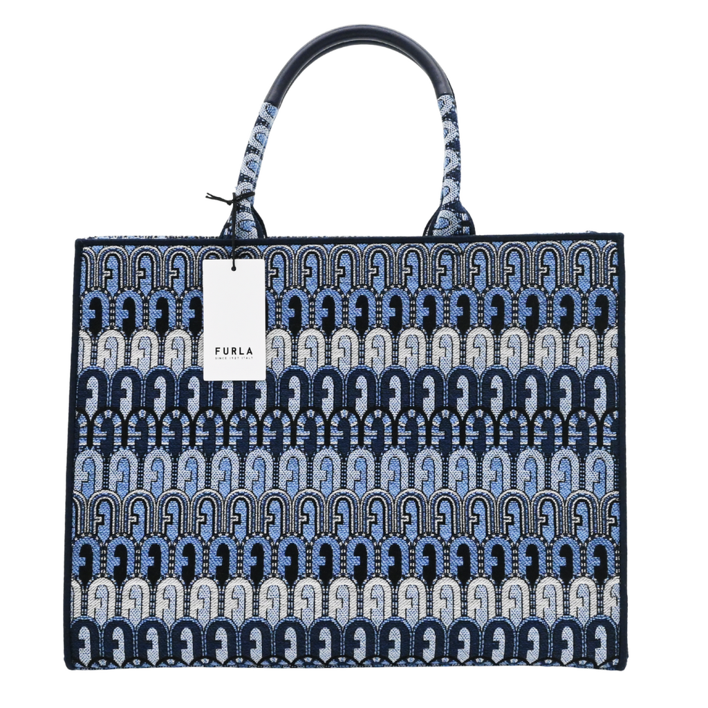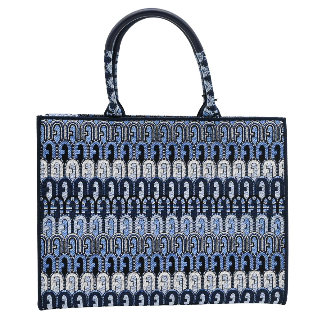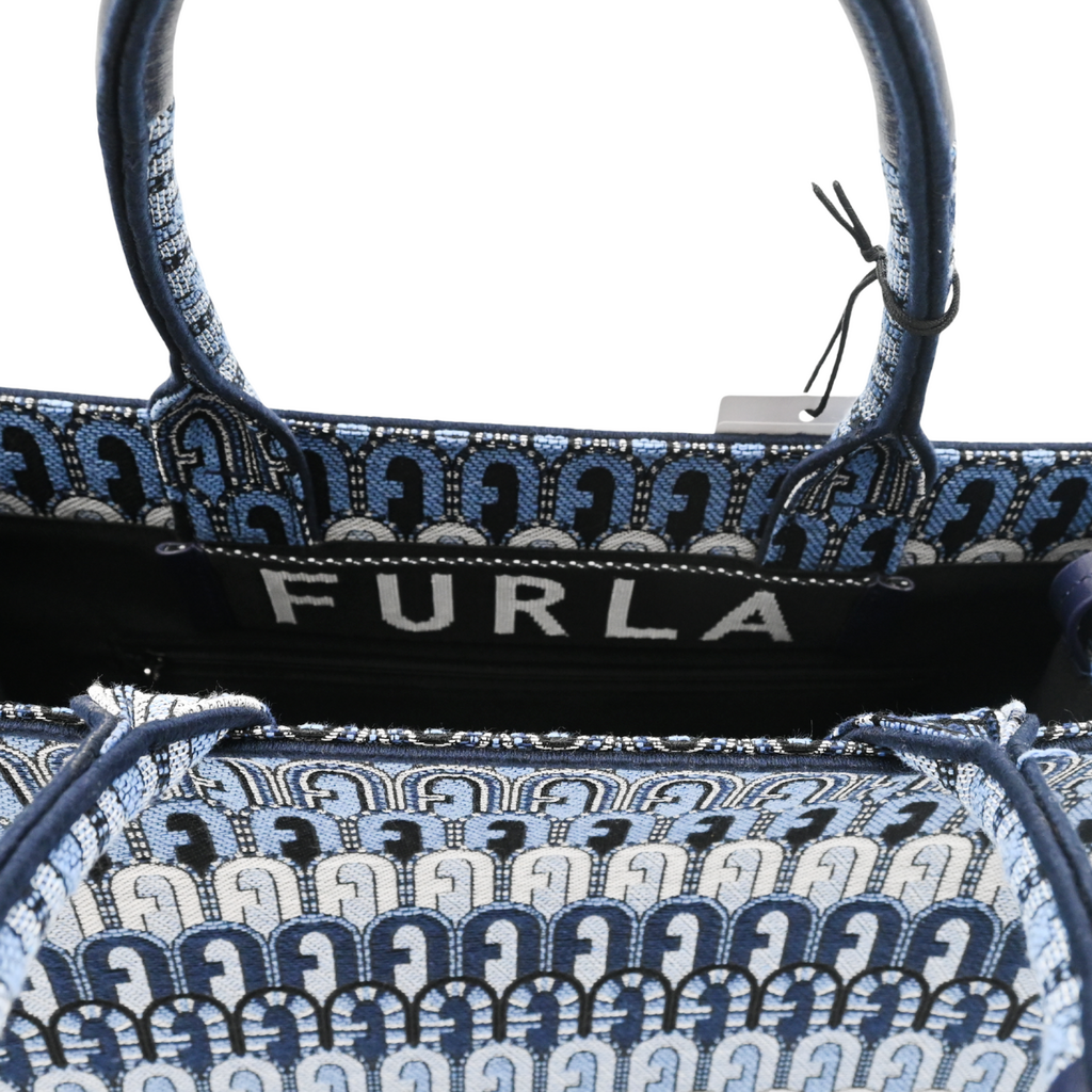 FURLA | Toni Blue Denim Monogram Canvas Tote Bag