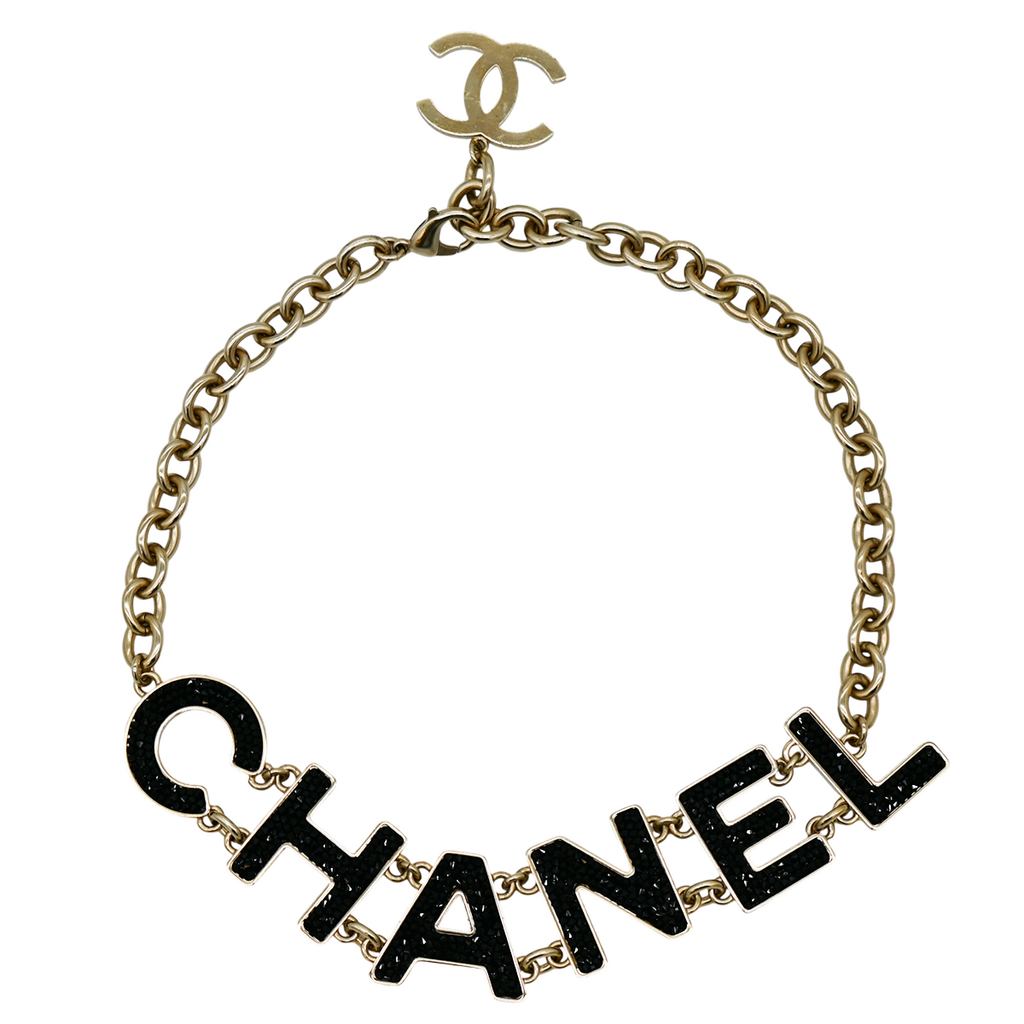 CHANEL | Black Crystal 'CHANEL' Embellished Necklace