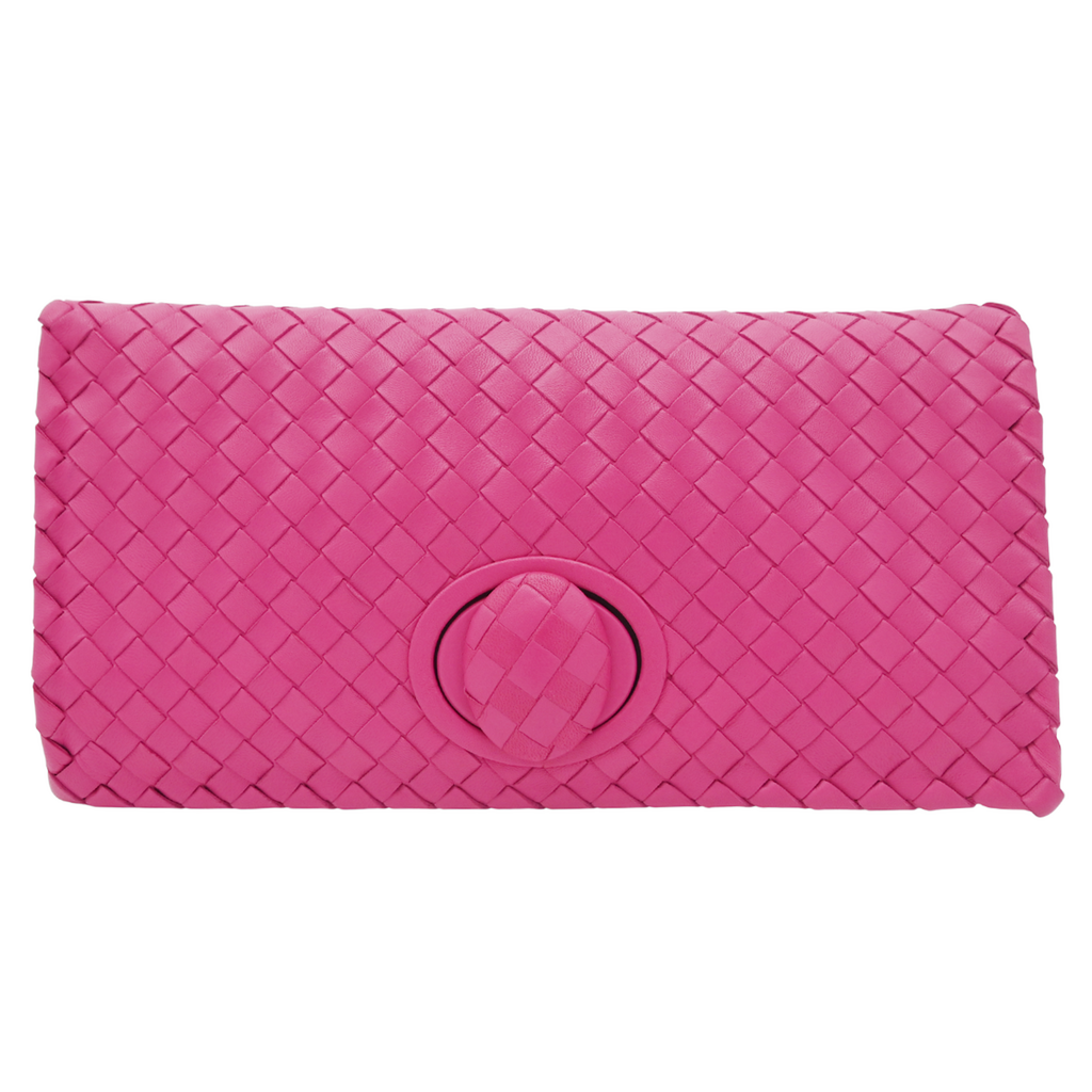 BOTTEGA VENETA | Pink Intrecciato Leather Clutch Bag