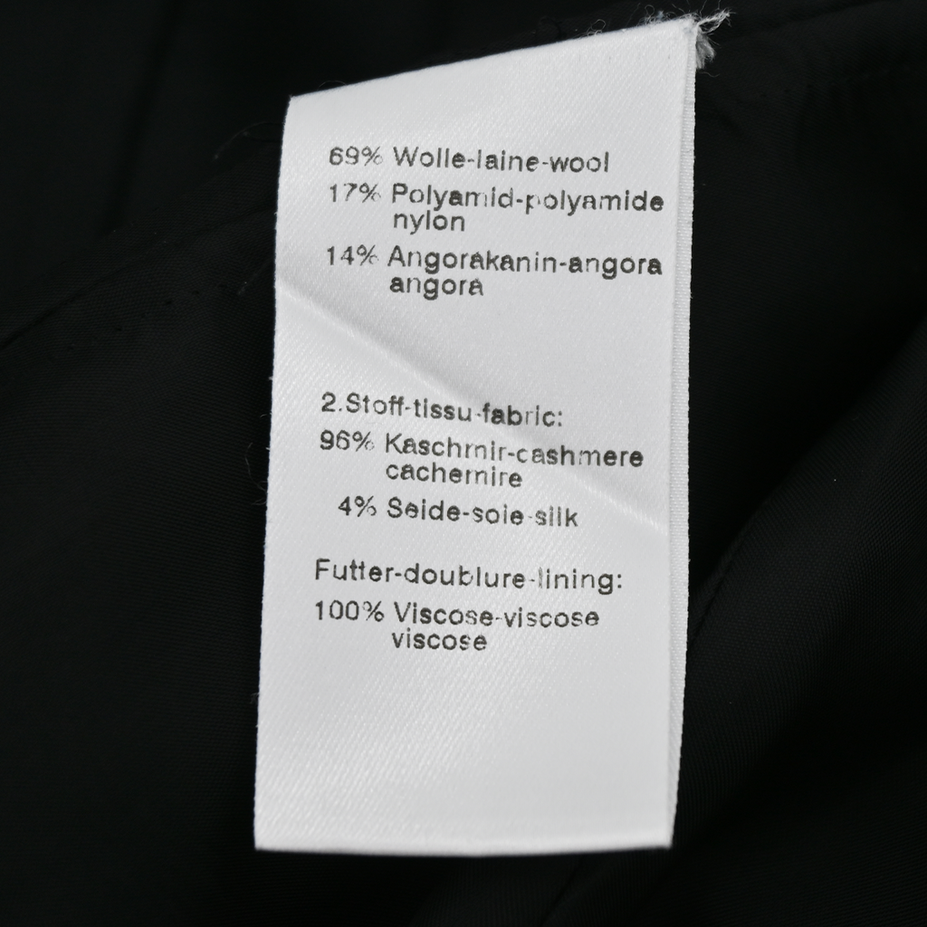 Gently used, with some signs of wear throughout. The fabric label is slightly torn. Minimal stains on the underarm lining. Possible alterations at the interior lining.