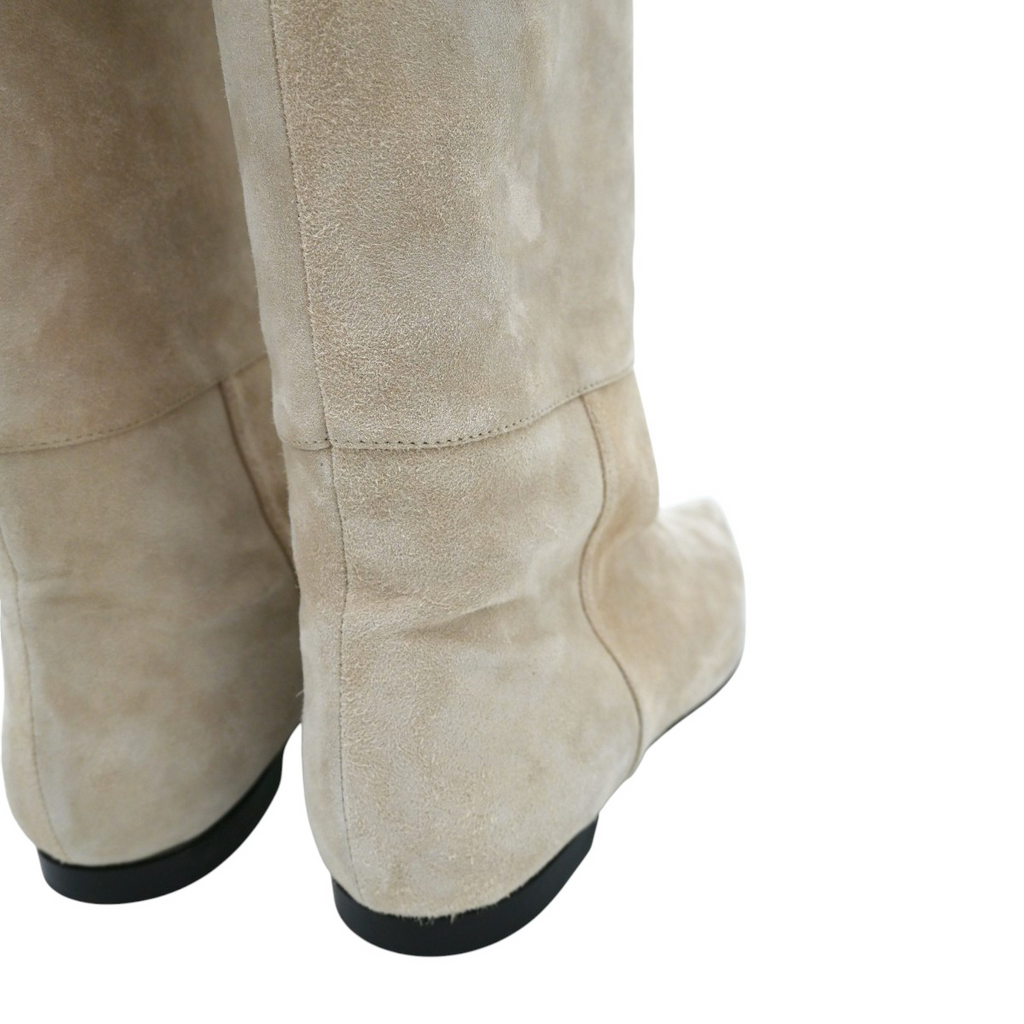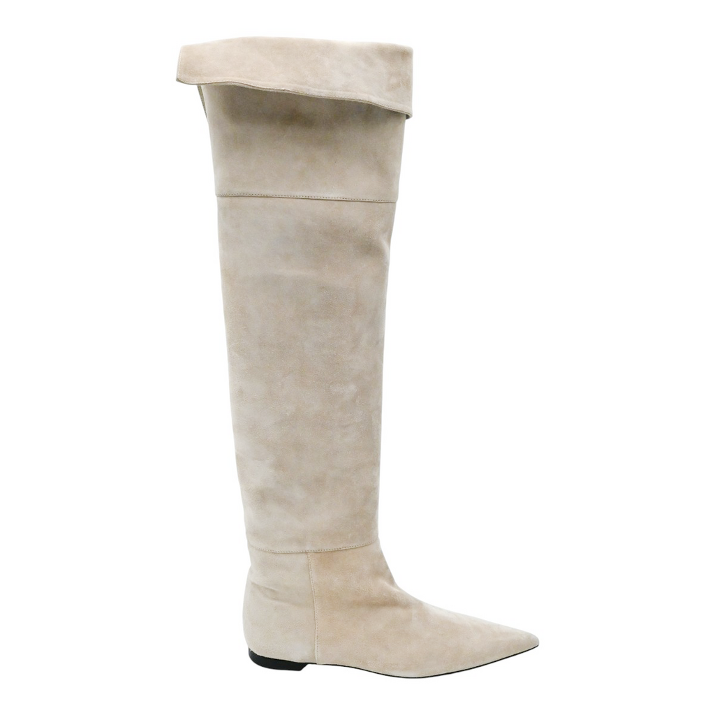 KHAITE | Bone Suede Pointed Over-The-Knee Boots Size 41