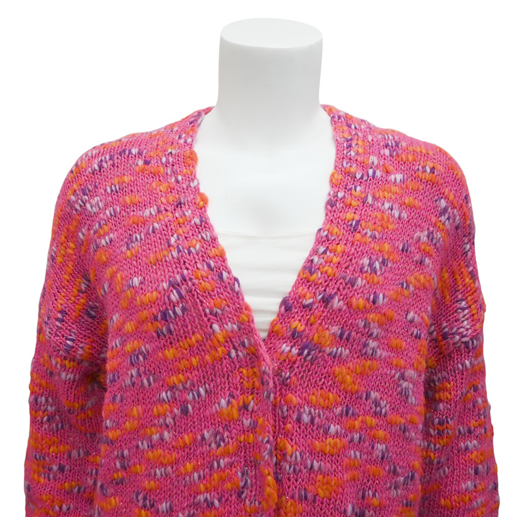 MARINA RINALDI | Pink Multicolor Knit Cardigan Size L