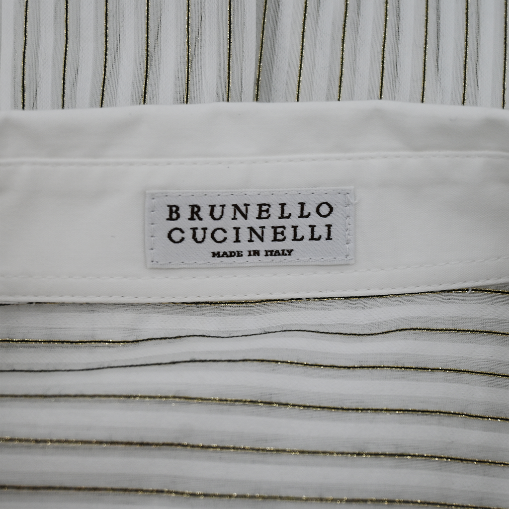 BRUNELLO CUCINELLI | Striped Metallic Sheer Button-Up Blouse Size Estimated L