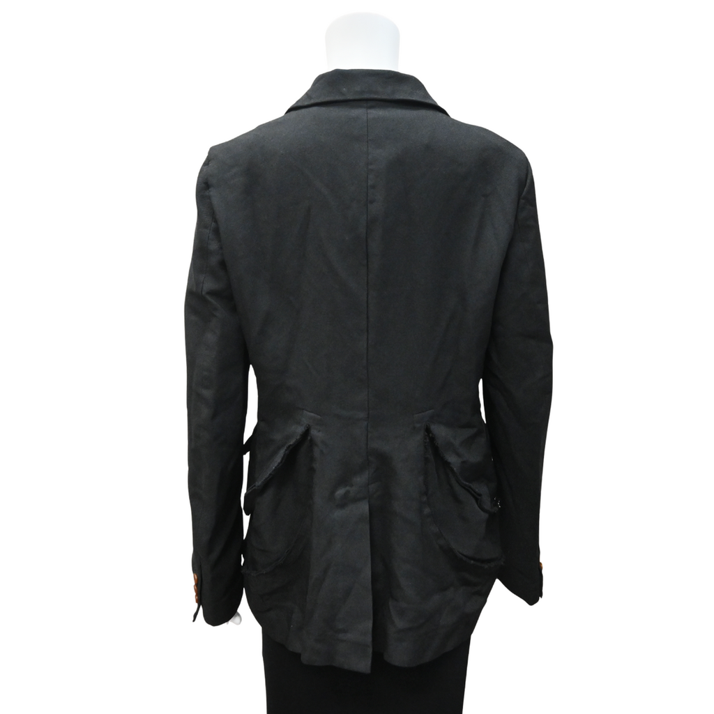 BLACK COMME DES GARCONS | Black Polyester Distressed Blazer Size Medium