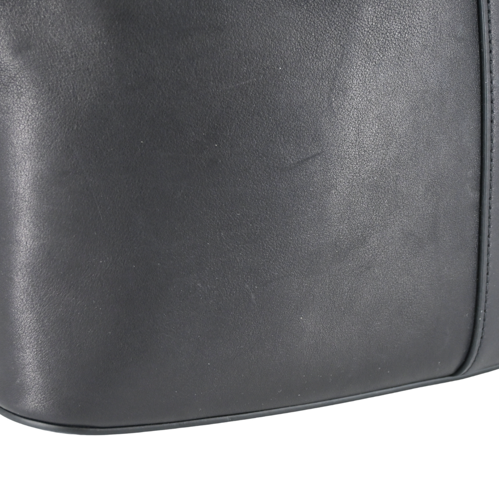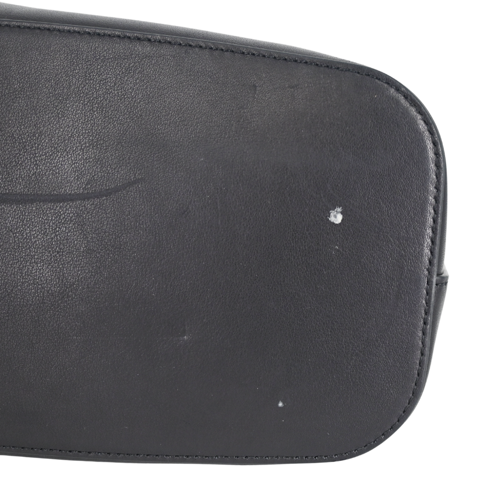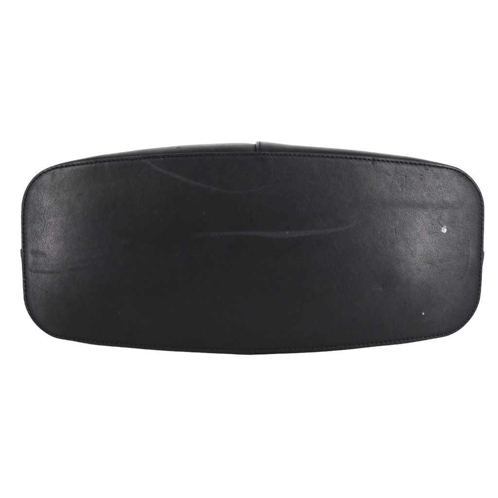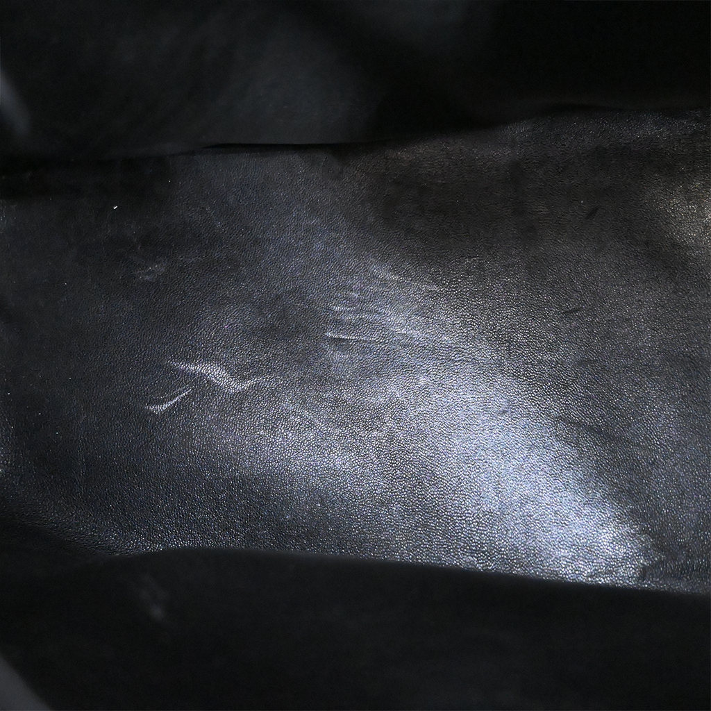 Used, visible scuffs, scratches. & marks throughout outer leather & lining. Two white spots at base. Top handles have been somewhat twisted from use.