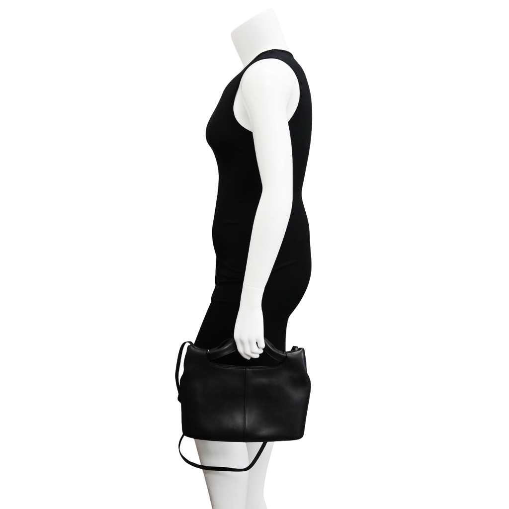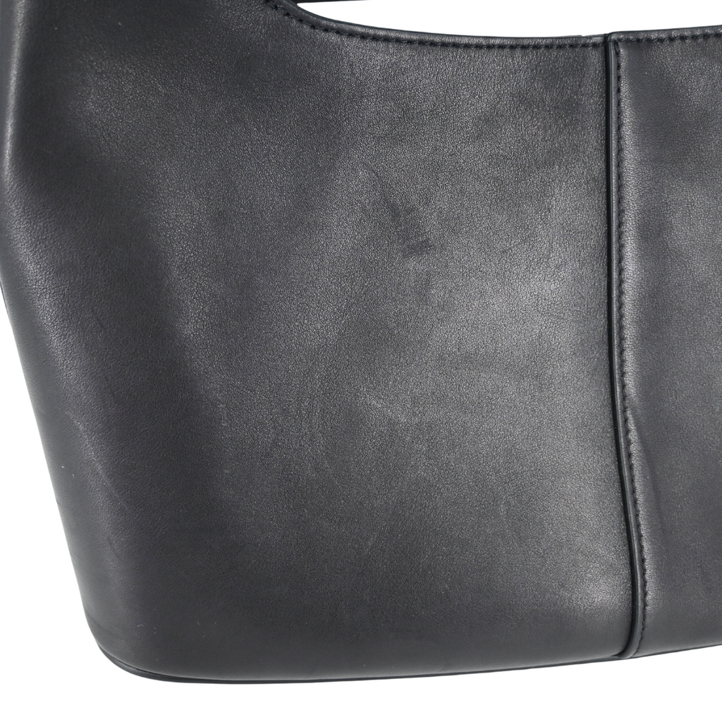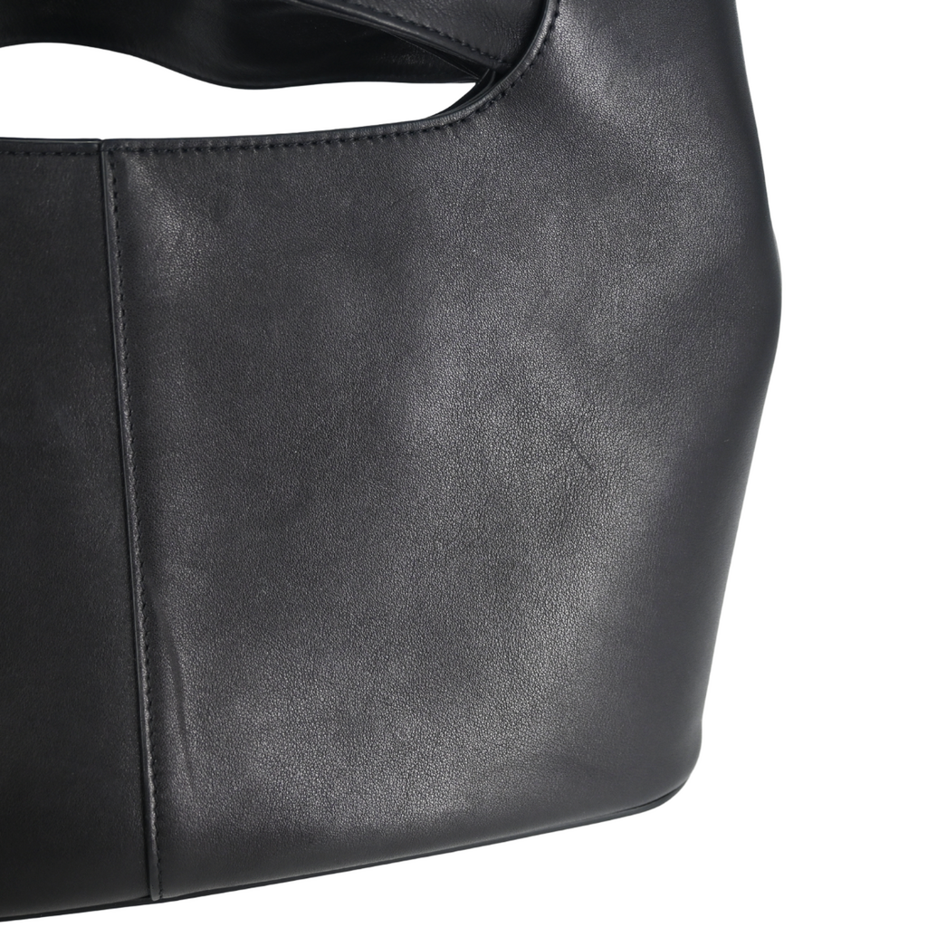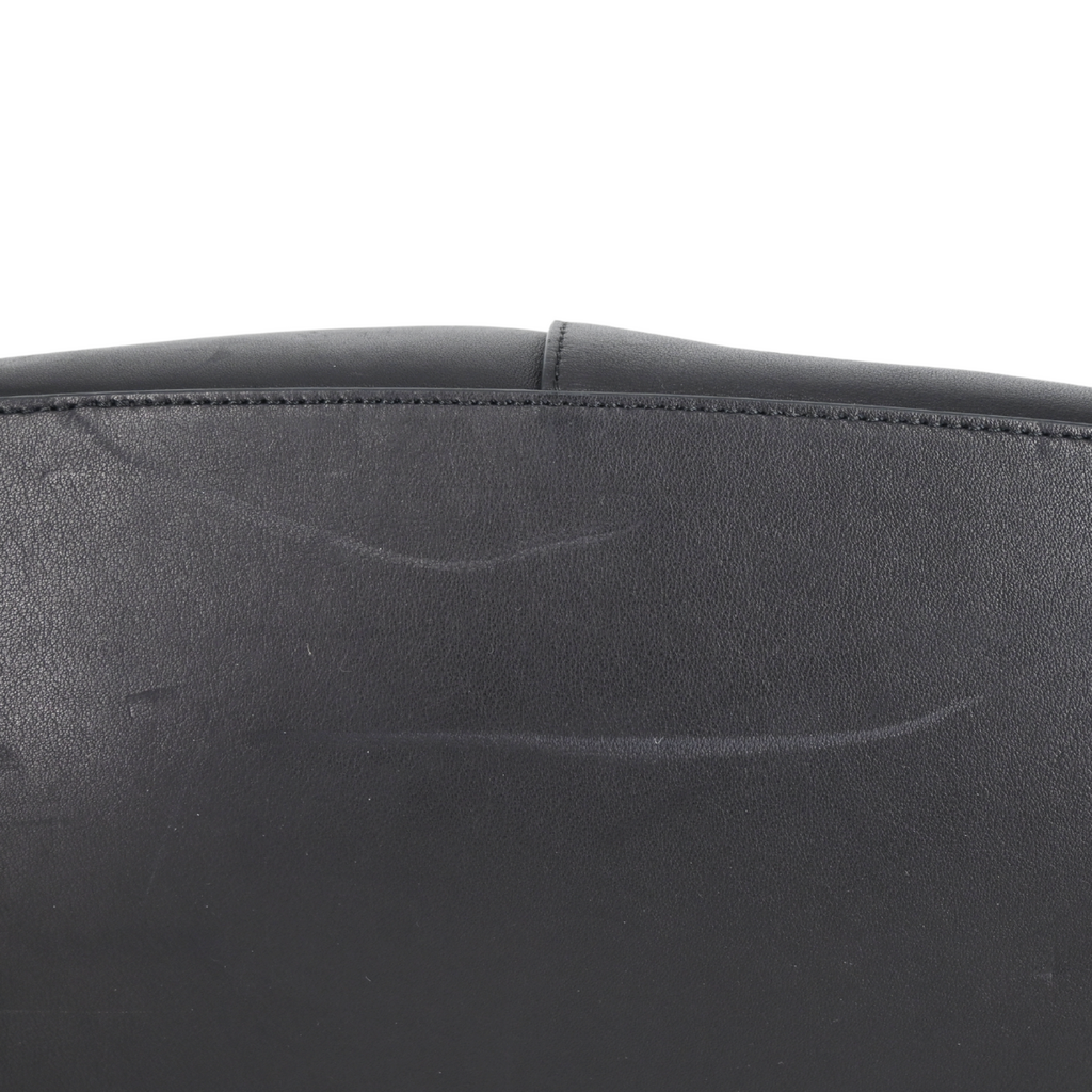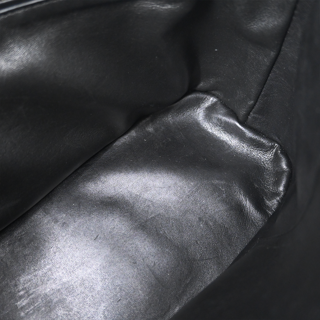 Used, visible scuffs, scratches. & marks throughout outer leather & lining. Two white spots at base. Top handles have been somewhat twisted from use.