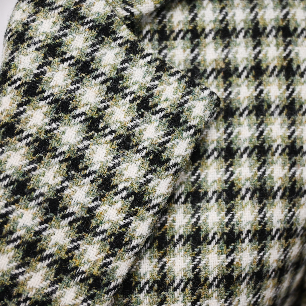 Sage green houndstooth wool fabric shell