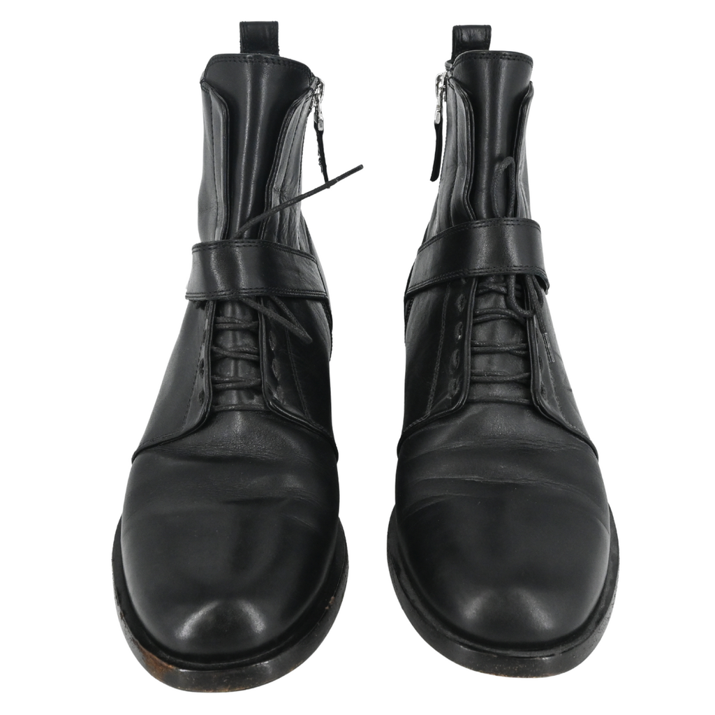 Used, with wear at the soles & insoles. Creasing, scuff marks, & wear at the upper leather. Some scratches at the hardware. Some residue at the interior. Visible wear at the midsoles.