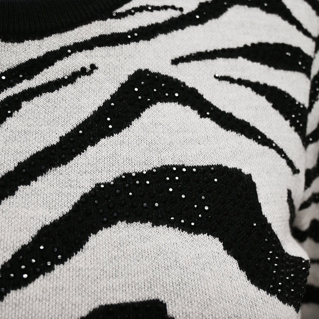 Zebra pattern wool-blend knit shell