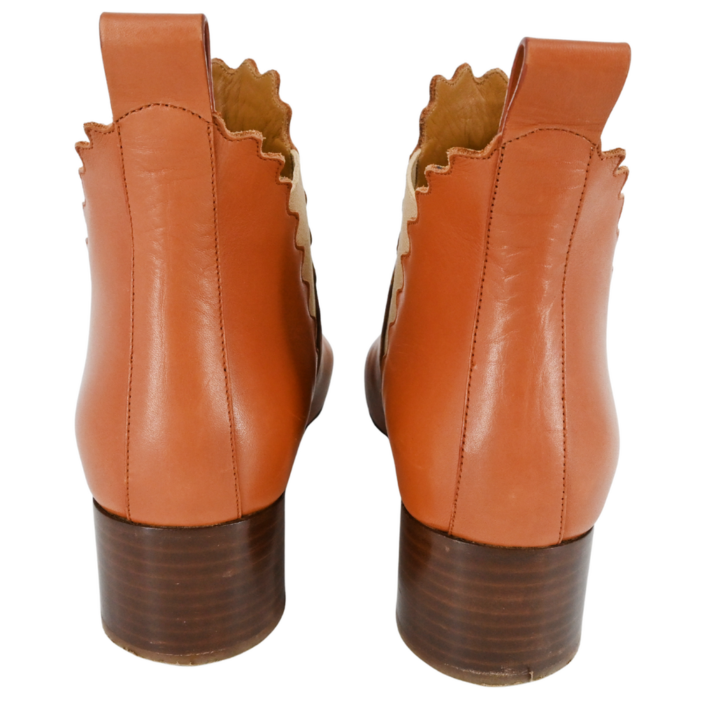 CHLOE | Tan Leather Scalloped-Trim Ankle Booties Size 39.5