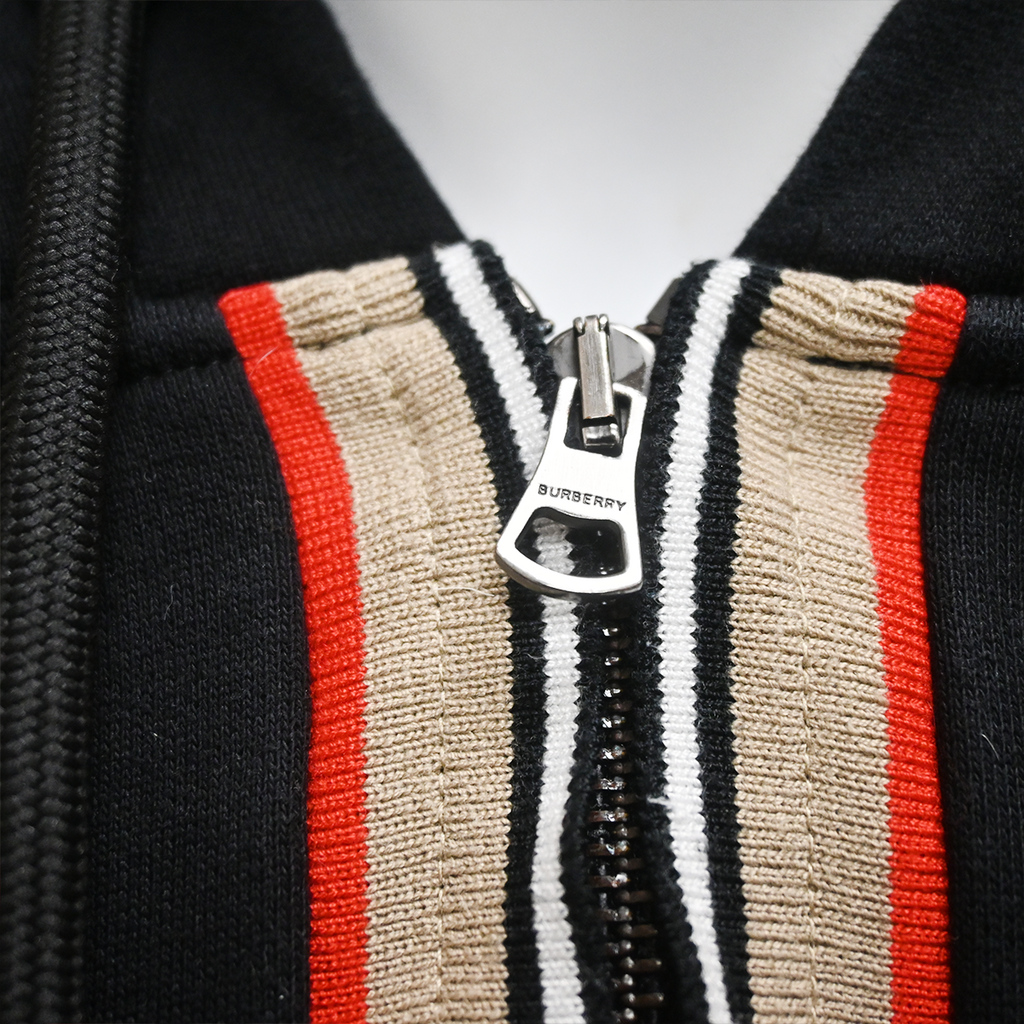 BURBERRY | Black Icon Stripe Lexington Zip Hoodie Size S
