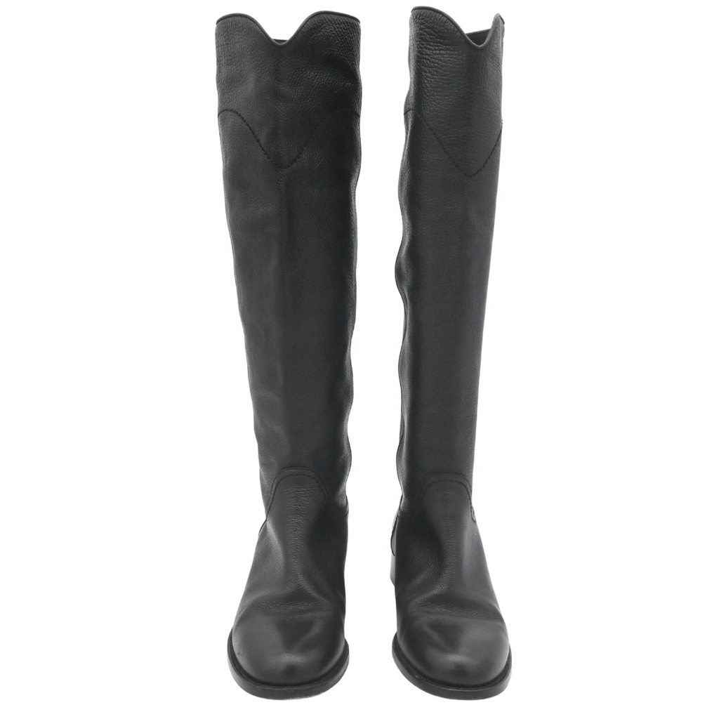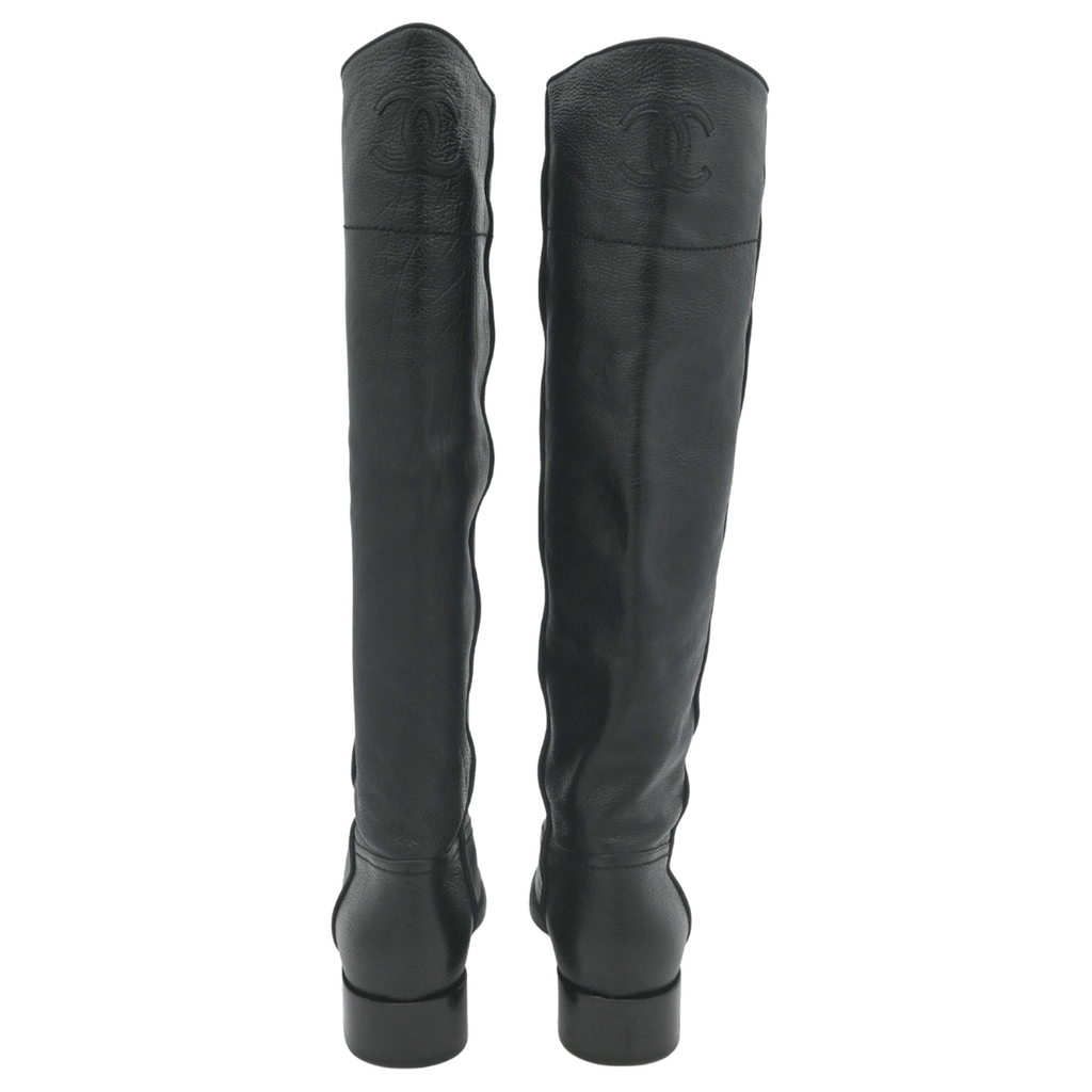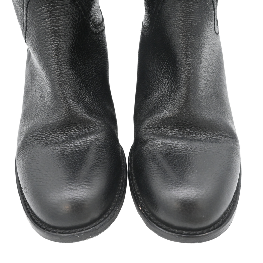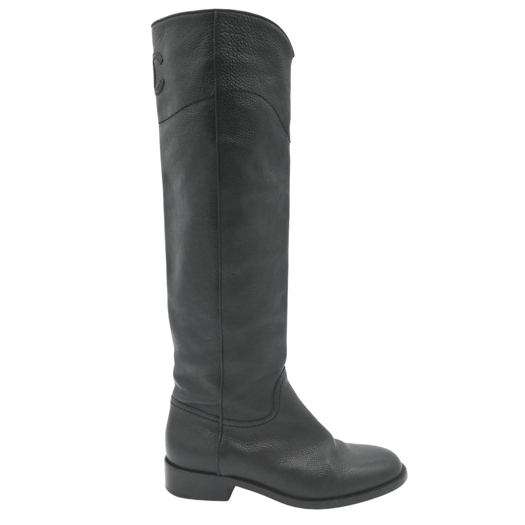 CHANEL | CC Black Leather Riding Boots Size 37.5