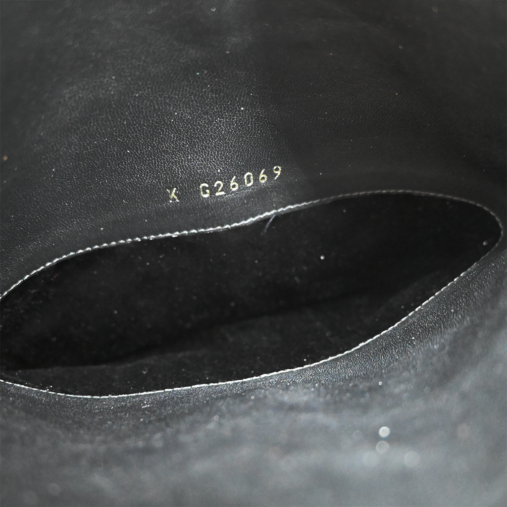 Gently used, with some wear at the soles & insoles. Some residue & wear at the interior. Creasing & scuff marks at the upper leather.
