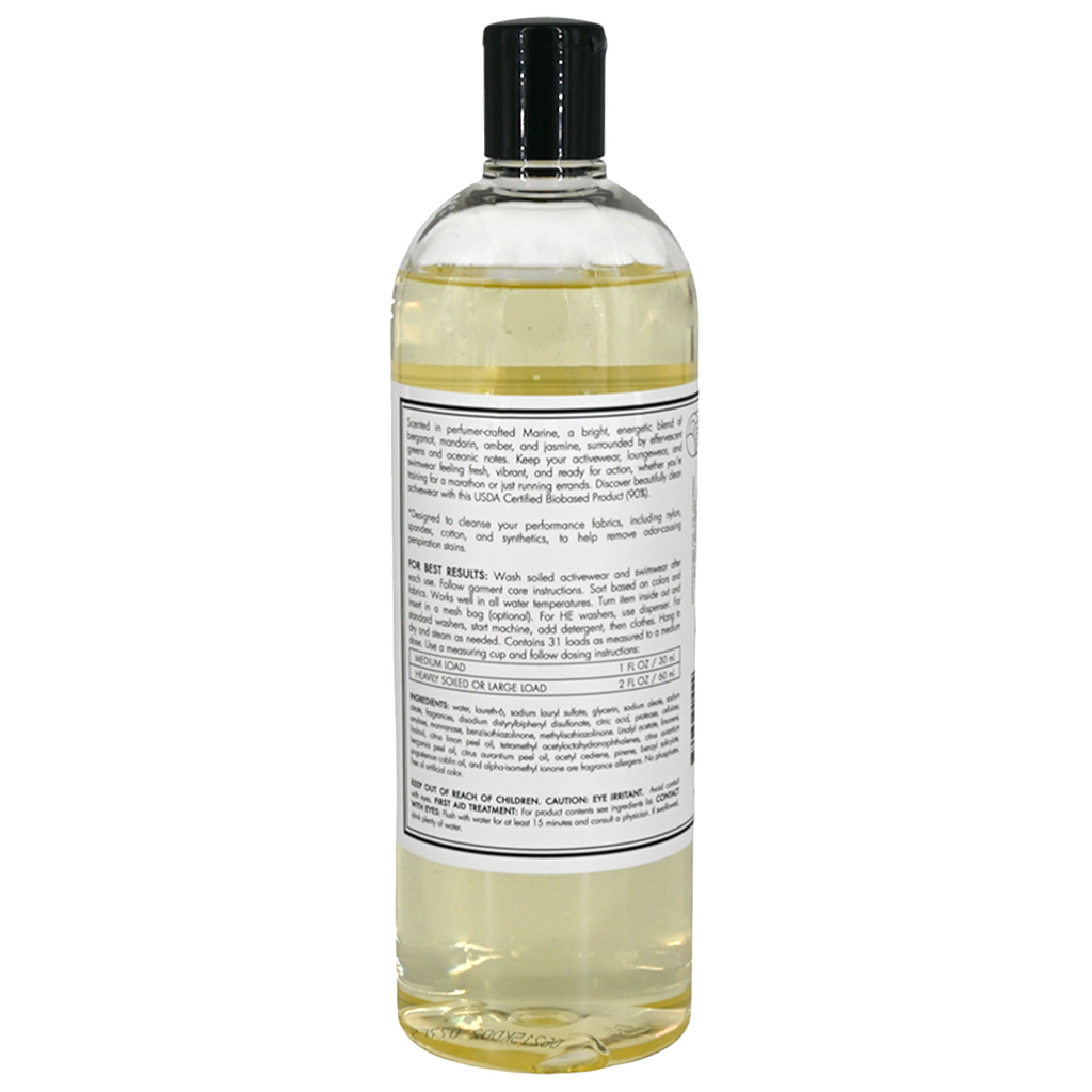 "Discover freshness that keeps up with the pace of every stretch, serve, swim, and sprint. Our high-performance Activewear Detergent is specially formulated to deep clean and maintain the vibrancy of technical fabrics like nylon, spandex, cotton, and synthetics. Packed with a powerful enzyme blend to remove odor-causing sweat stains and buildup, it’s ideal for the leggings, sports bras, swimsuits, sweats, and gym tees you live in. Featuring our new long-lasting Marine scent, an energizing blend of bergamot, mandarin, amber, effervescent greens, and oceanic notes to transform laundry day into a fresh ritual of renewal. Consider this your new post-workout routine." - The Laundress