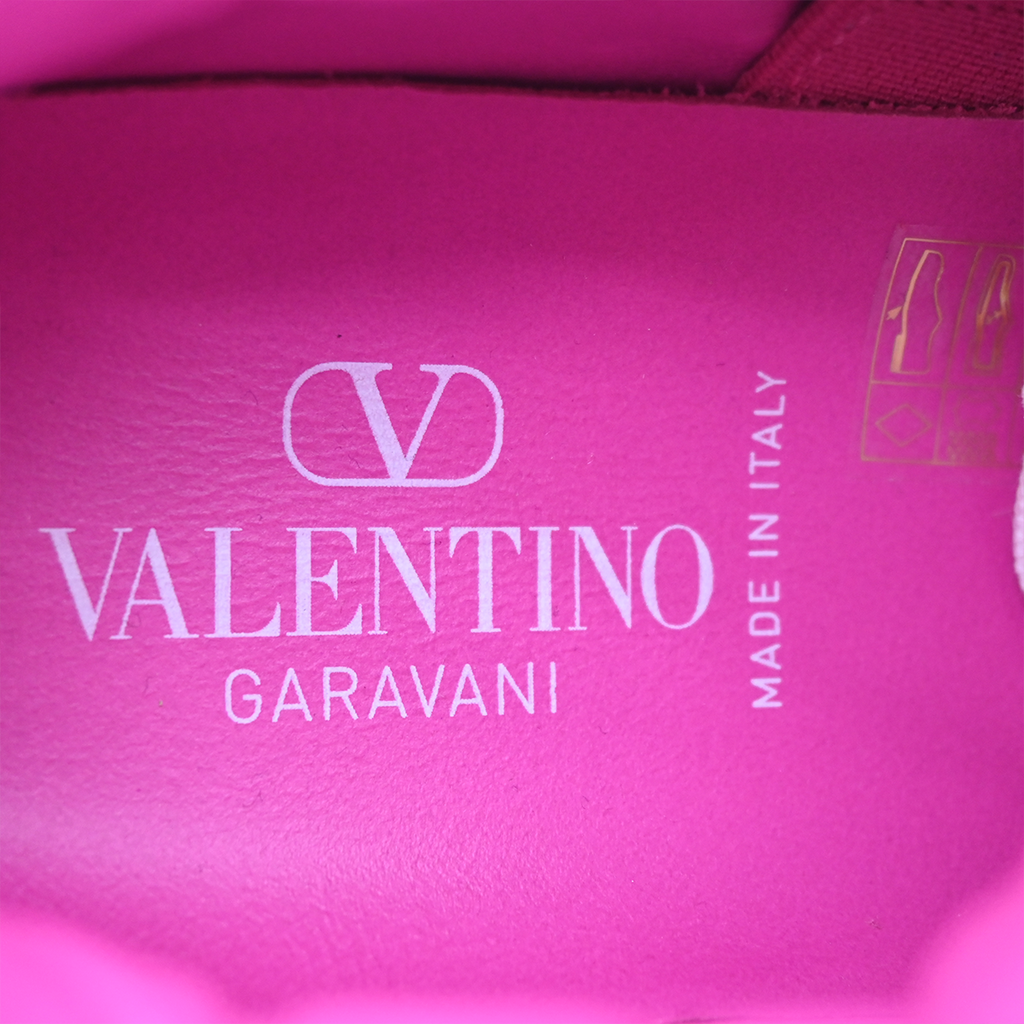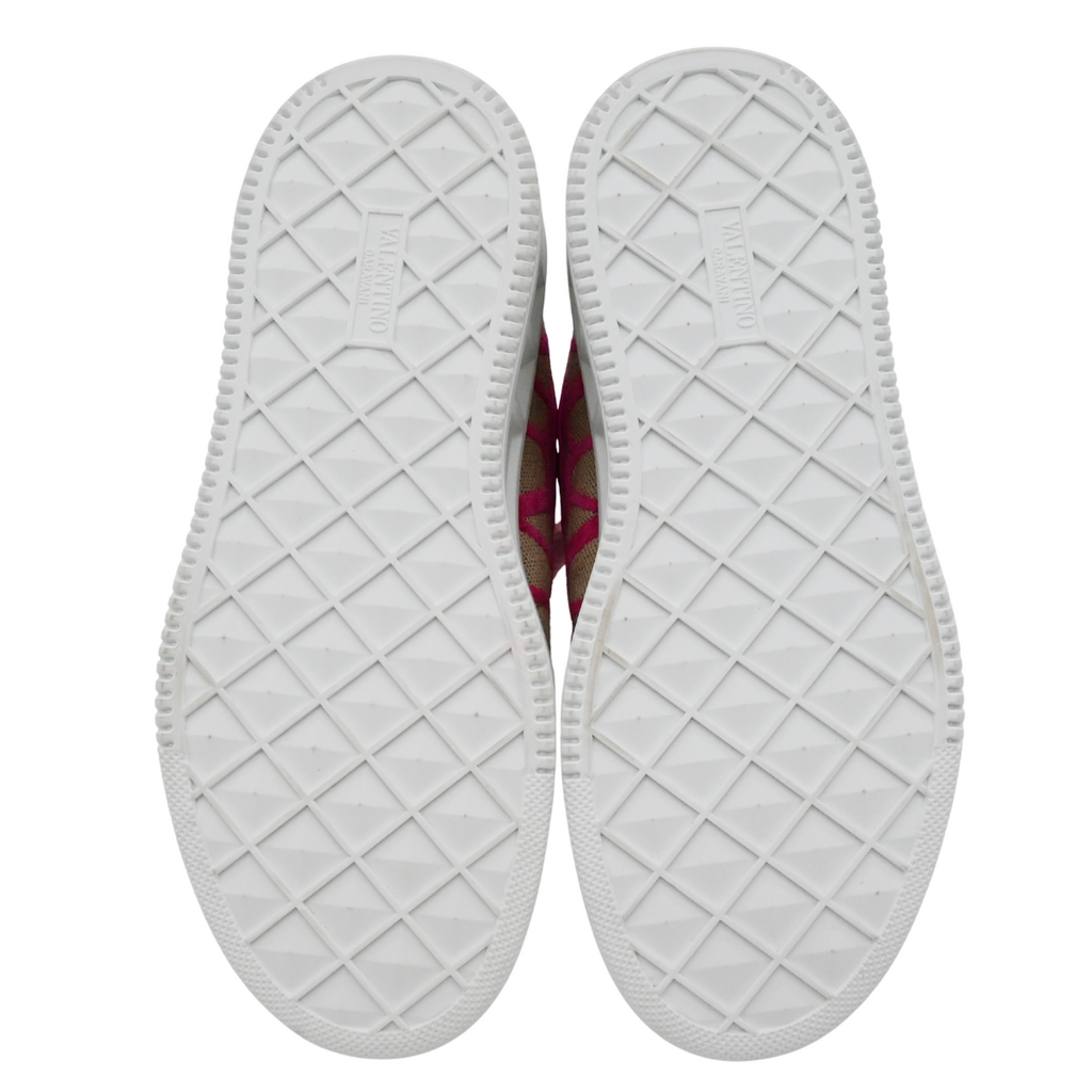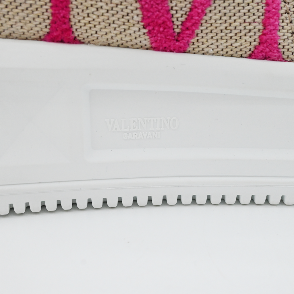 Magenta V logo velvet monogram on the beige upper canvas